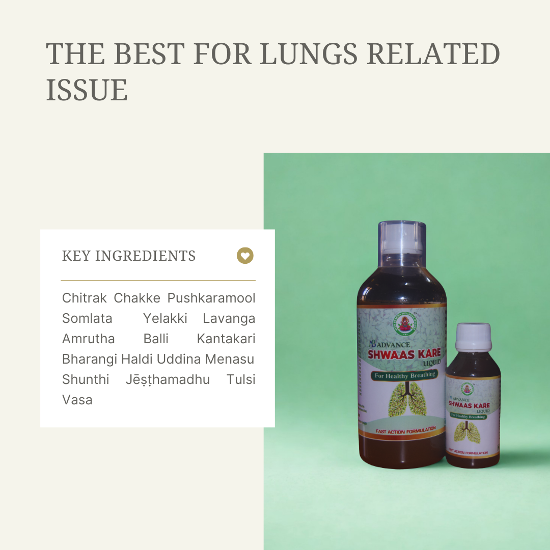 AB Advance is committed to providing high-quality, herbal wellness solutions that cater to your health needs. Our Shwaas Kare Liquid is made with natural ingredients and is free from harmful chemicals, making it a safe and effective choice for respiratory support.