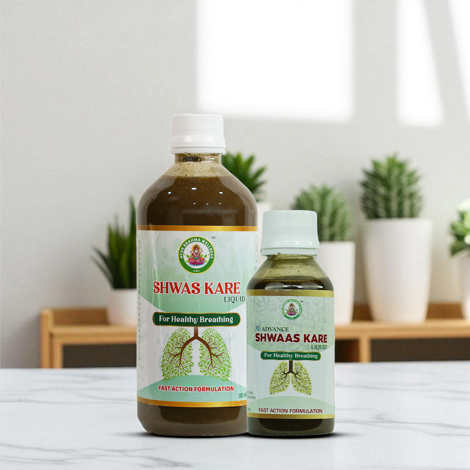 Shwaas Kare Liquid is enriched with powerful herbs known for their effectiveness in soothing the respiratory system. It helps in loosening mucus, reducing irritation, and providing relief from seasonal allergies and environmental pollutants.
