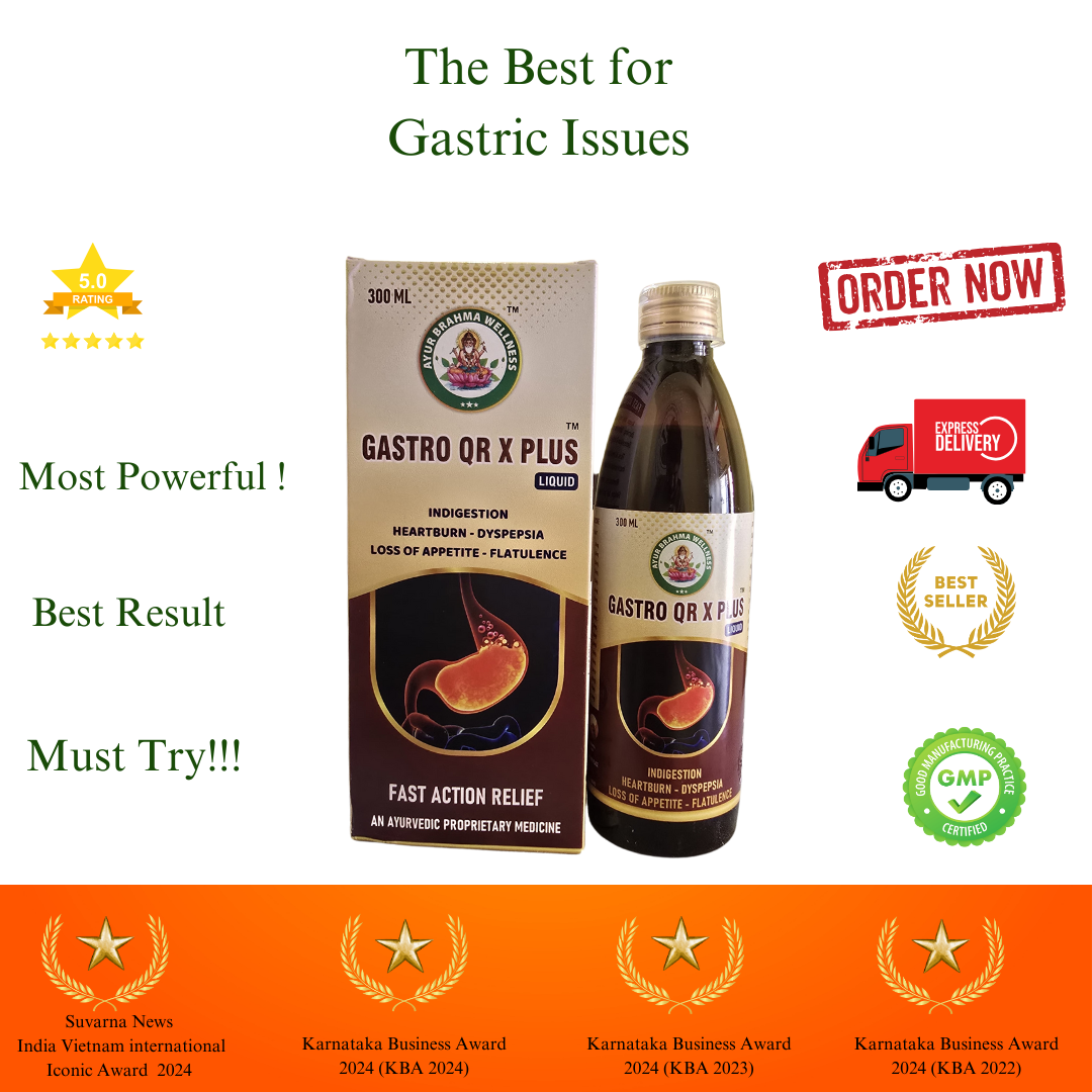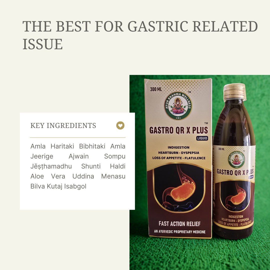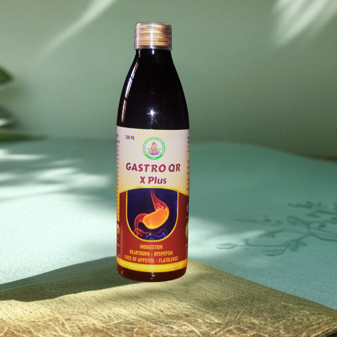 Gastro QR X Plus is a 300 ml herbal digestive tonic that helps relieve indigestion, heartburn, dyspepsia, gas, and loss of appetite. Made with natural ingredients, it supports overall digestive health. Dosage: 10 ml before food, twice daily.